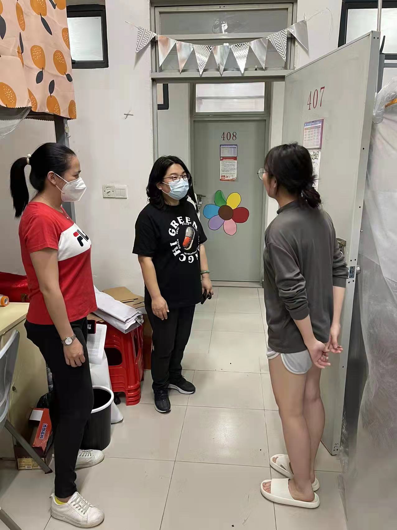 同时,为进一步了解学前教育与人文学院学生在校生活情况以及学习状态,加大对莘莘学子身心健康发展的重视与关切,做好疫情防控工作,学前教育与人文学院院长辛海霞,党总支副书记朱跃东以及辅导员黄宇慧老师一行深入走访学生宿舍,详细了解与掌握学生生活动态,并为学生带去关心和慰问。