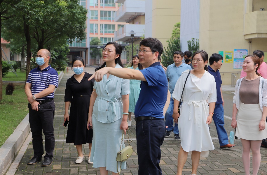 关校长带领大家参观校园