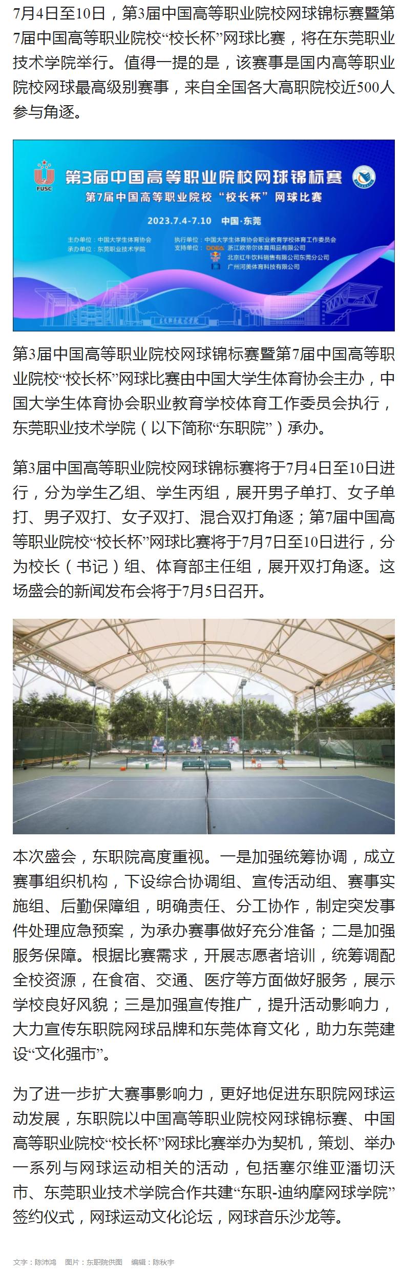 【东莞+】文化强市|这场全国高职院校网球盛会将在东职院举行