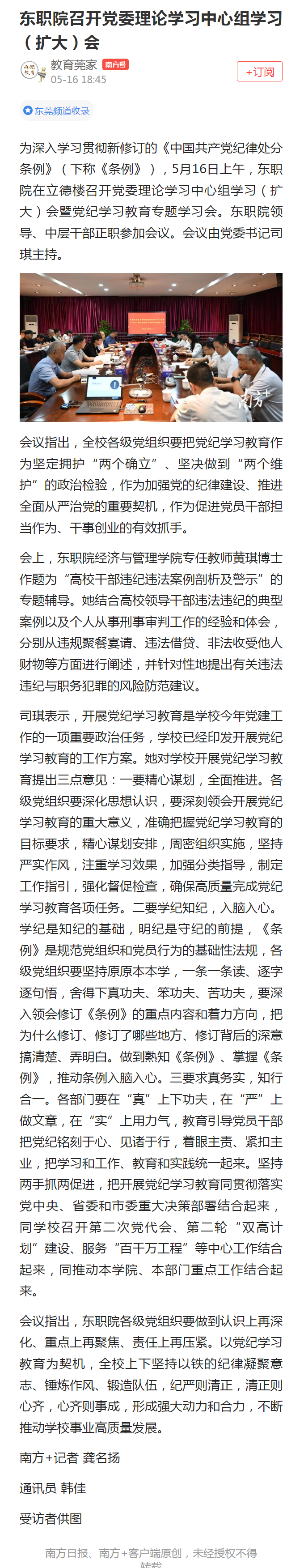 【南方+】东职院召开党委理论学习中心组学习(扩大)会
