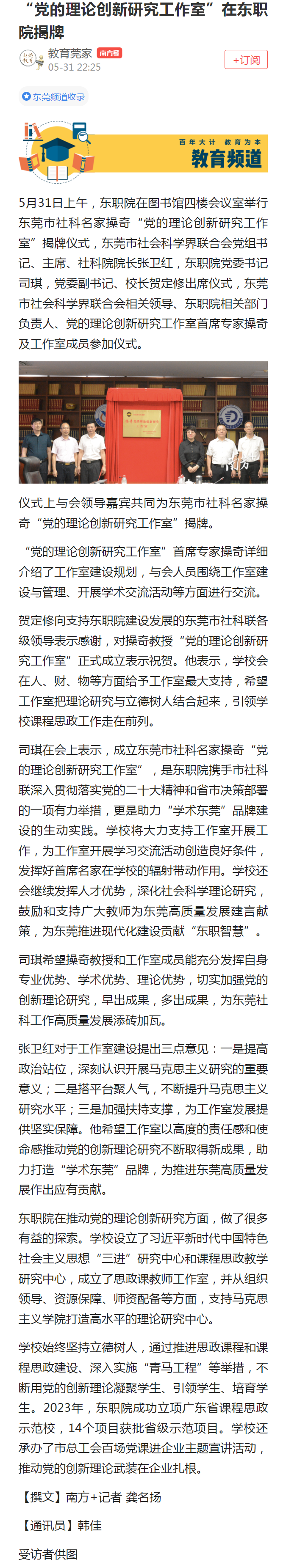 【南方+】“党的理论创新研究工作室”在东职院揭牌